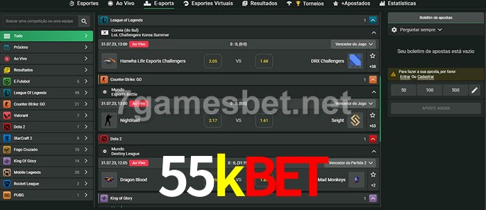 O 55kbet oferece uma grande seleção de opções de apostas em e-sports com probabilidades competitivas